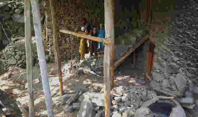 村内を移動するのも、村へたどり着くのと同じくらい困難だ。地元住民が「通り」と呼ぶものは、巨岩の間を縫う狭く滑りやすい小道で、山間を流れる小川が横切り、今は地震の残した丸太や板、泥が散乱している。