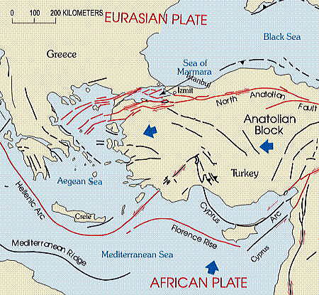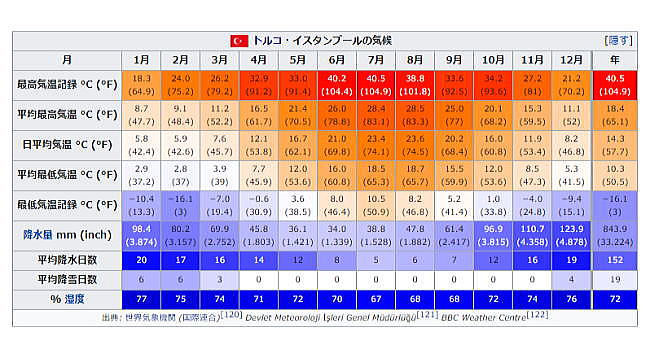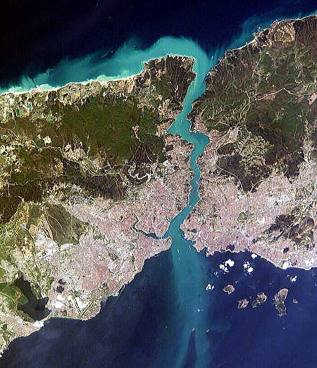 | 総合メニュー(西アジア) イスタンブル1 イスタンブル2 イスタンブル3 イスタンブル4 イスタンブル5 イスタンブル6 イスタンブル7 イスタンブル8 イスタンブル9 イスタンブル10 イスタンブル11 イスタンブル12 イスタンブル13 イスタンブル14 イスタンブル15 次はトルコのイスタンブル5の地理と気象です。 ◆イスタンブル5・地理・気候 地理 ![]() イスタンブル市街の衛星写真。左がヨーロッパ、右がアジアで、両者の間を隔てるのがボスポラス海峡。海峡の南がマルマラ海で、北が黒海。マルマラ海の北岸、ヨーロッパ側に見える三角形の半島がイスタンブル旧市街で、海峡から旧市街に切れ込んだ海が金角湾。この写真から旧市街から城壁や海を越えて市街地が拡大していることがよく分かる。 Astronaut photograph ISS008-E-21752 - NASA Earth Observatoryhttp://earthobservatory.nasa.gov/Newsroom/NewImages/images.php3?img_id=16539, パブリック・ドメイン, リンクによる Source:Wikimedeia Commons イスタンブルはトルコ北西部マルマラ地方に位置し、5,343km2 (2,063 sq mi) の範囲を占めています。 ボスポラス海峡はマルマラ海と黒海を結び市街を歴史や経済の中心であるヨーロッパのトラキア側とアジアのアナトリア側に分けています。さらに市街は金角湾により分けられ、以前のビザンティンやコンスタンティノープルが創建された半島は天然の港に囲まれています。マルマラ海やボスポラス海峡、金角湾の交わる辺りが今日のイスタンブールの中心で数千年の間攻撃から街を守って来ており、まだ街の景観の特徴として良く残されています。 A high concentration of fault lines in northwestern Turkey, where the Eurasian and African plates meet; a small number of faults and ridges also appear under the Mediterranean ![]() トルコ西部の断層は丁度、イスタンブールの南西に集中しマルマラ海とエーゲ海の下を通っています。 U.S. Geological Survey - http://neic.usgs.gov/neis/eq_depot/2003/eq_030501/neic_tgac_maps.html, パブリック・ドメイン, https://commons.wikimedia.org/w/index.php?curid=10750991による Source:Wikimedia Commons イスタンブルの市章のモデルにもなっているローマの七丘をモデルとしたイスタンブルの七丘は歴史的な半島を特徴付け、それぞれの頂上には帝国のモスクがあります。これらの丘の最も東のものはサライブルヌの上のトプカプ宮殿の場所であります。金角湾の反対側から上がると、別の円錐の丘で近代的なベイオール地区が位置しています。 地形のためにベイオールの建物はかつて斜面を保った擁壁の助けを借りて建てられ、道は階段の形で配置されました。アジア側に位置するユスキュダルでは地形が徐々にボスポラス海峡沿岸の下方に延びるとともに、同じような丘陵地の特性を示しますが、シェムシパシャ Şemsipaşa やアヤズマ Ayazma では景色がより急峻な岬に似ています。イスタンブルで一番海抜が高いのはチャムジャの丘Büyük Çamlıca Tepesi で 288meters (945 ft) です。 イスタンブルは北アナトリア断層の近くに位置し、アフリカプレートやユーラシアプレートの境界に近いのです。この断層地帯は北アナトリアからマルマラ海にかけて走り、これは都市の歴史を通していくつかの甚大な震災と関連しています。甚大な震災の中には1509年イスタンブル地震が含まれこの地震による津波は城壁を超え市街を破壊し、10,000人が犠牲になっています。 より最近ではイズミット近くを震源とする1999年のイズミット地震で18,000人が犠牲となり、イスタンブル郊外の1,000人も含まれています。イスタンブルの人々はイスタンブルの急速な人口増加に対応するために最近建設された数千の住宅が正しく建設されていない可能性があり、さらに壊滅的な震災が都市で発生することを危惧しています。地震学者は2030年までにマグニチュード(モーメントマグニチュード)7.6かより大きな地震がイスタンブルで起こる可能性が60%以上であると言っています。 気候 イスタンブルの気候は改訂されたケッペンの気候区分によれば地中海性気候 (Csa) と温暖湿潤気候 (Cfa) の境界にあたり、夏の2ヶ月間だけ40mm以下の降水量のため亜熱帯か地中海性の気候か単独で分類されるのが妨げられています。 しかしながら、広大な市域や多様な地形、海辺の場所などイスタンブルでは微気候が見られます。市街の北部は海洋性気候で表されるが (Cfb)、これは黒海からの湿気や比較的高い植生の密度によるのです。市街南部の人口密集地の気候は暖かく、湿度の影響を受けにくいのです。 ![]() Skyscrapers, both near and far, soar above a dense layer of fog that keeps the ground hidden from view. レヴェント地区を覆う霧。朝によく発生する。 John Walker from Chicago - fog over Istanbul skyscrapers, CC 表示 2.0, リンクによる Source:Wikimedeia Commons 実際、イスタンブルの気候の顕著な特徴の一つに持続的な高湿度があり、湿度は80%に達しほとんどは朝です。これらの気象条件により霧はごくありふれたもので、市の北側や中心部から離れた場所ではより多いのです。 特に深い霧はボスポラス海峡を含め地域の交通を混乱させ、