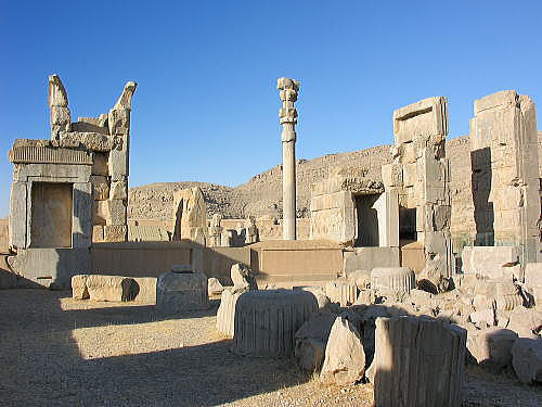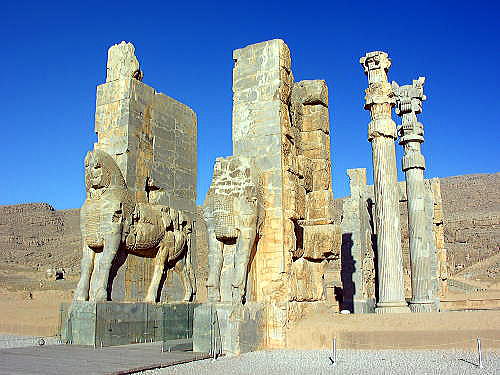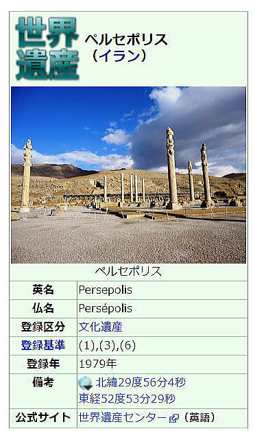 | 総合メニュー(西アジア) イランの世界遺産 世界遺産1 世界遺産2 世界遺産3 世界遺産4 世界遺産5 世界遺産6 世界遺産7 世界遺産8 世界遺産9 世界遺産10 世界遺産11 世界遺産12 世界遺産13 世界遺産14 世界遺産15 世界遺産16 世界遺産17 世界遺産18 世界遺産19 世界遺産20 世界遺産21 世界遺産22 世界遺産23 次はイランの世界遺産2です。 ◆イランの世界遺産2 ペルセポリス (1979年) ![]() 出典:Wikipedia ![]() ペルセポリスの位置 出典:Wikipedia ![]() ペルセポリス Ahura - 投稿者自身による作品, CC 表示-継承 3.0, リンクによる Source:Wikimedia Commons 概要 Pārśapura、古代ギリシア語: Πέρσης πόλις - 音声転写: Pérsēs pólis、英語: Persepolis)は、アケメネス朝ペルシア帝国の都です。ダレイオス1世(ダーラヤーウ1世)が建設した宮殿群でした。遺跡はイランのファールス州(当時の地名はパールサ地方)にあります。 名称 ペルセポリスの名はギリシャ語の記録に由来、意味は「ペルシア人の都です。現代ペルシャ語ではタフテ・ジャムシード(takht-e jamshid、تخت جمشید)、「ジャムシードの玉座」と呼ばれています。 ![]() ペルセポリス (1979年) Source:Wikimedia Commons 歴史 ダレイオス1世がペルセポリスの建設に着手したのは紀元前520年のことでした。これはダレイオス1世即位時の大反乱、当初帝国の中心として構想された都市であったといわれています。ペルセポリスはクーヒ・ラハマト(慈悲の丘)の山裾に自然の岩盤を利用して建設されました。 クセノフォンの記録によればアケメネス朝の王は春3か月間をスサ、夏2か月間をエクバタナ、冬7か月間をバビロンで過ごしたとあり、ペルセポリスは儀式用の都市であったのではないかという説もあります。 しかし、少なくとも創建当初にはペルセポリスで実際に行政活動が行われていたことは宮殿跡から発見されたエラム語[3]の文書でわかります。エラム語の行政文書は、少なくとも紀元前509年から紀元前457年までの物が発見されています。 都市の建設も、ダレイオス1世の治世からクセルクセス1世(フシャヤールシャ1世 前486年-前465年)、アルタクセルクセス1世(アルタフシャサ1世 前465年-前424年)の治世前半まで継続して行われており、ペルセポリスで行政活動が行われていた時期と、建設活動が行われていた時期がほぼ重なっていることがわかります。 一方でこれらの行政記録から、ダレイオス1世時代から既に王がこの都市に滞在することはほとんど無かったこともしられており、帝国の中心としては圧倒的にスサの方が重要性の高い都市でした。多くの学者の説によれば、ペルセポリスの主要な用途は帝国の新年祭を執り行う場であり、諸民族からの貢納を受け取り、アケメネス朝の王権が神から与えられたことを確認する聖域であったと言われています。また、天文観測所としての機能も持っていたといわれており、暦の制定に重要な役割を持ったと考えられています。 時代を経るごとにペルセポリスが実際の政治から遠ざかっていったことは、王城内部にアルタクセルクセス2世やアルタクセルクセス3世の墓が作られていることからも推察され、更に新年祭などの儀礼行為も次第にスサやバビロンに場所を移すようになってペルセポリスでは行われなくなったと言われています。 にもかかわらず、ペルセポリスはアケメネス朝の滅亡の時まで首都と見なされていました。これはアケメネス朝を滅ぼしたアレクサンドロス大王に纏わる諸記録からも明らかであり、またペルセポリス攻略の際に彼は12万タラントンの黄金を手に入れています。 これは彼がスサで獲得した黄金の3倍にも上る量であり、これだけの財宝が保存されていたことは、アケメネス朝最末期においてもペルセポリスが重要な都市であったことを証明します。だからこそアレクサンドロス大王もわざわざこの都市を訪れ、そして破壊していったのです。 紀元前331年、アレクサンドロス大王の攻撃によって破壊され、廃墟となりました。以後、この都市は今日に至るまで廃墟ですが、その壮大な遺構は残され、イスラーム時代の記録にはマルアブ・スレイマン(ソロモンの遊技場)、ハザール・ストゥーン(千の柱)、チヒル・ミナール(40の尖塔)などと言う名で言及されており、現在のイランではタフテ・ジャムジード(ジャムシードの玉座)の名で知られています。 現在知られている限りペルセポリスの名がはじめて歴史に登場するのは、古代ギリシアの歴史家クレイタルコスの著した『アレクサンドロス伝』であったといわれています。この書が後世多くの学者によって引用されたためにペルセポリスの名もアケメネス朝の王都の名として広く知られるようになりました。 すなわち、ペルセポリスの名が記録されるのは、既に破壊された後のことです。ペルセポリスという名称は「ペルシアの都」と、「都市を破壊する」[6]を掛けた一種の言葉遊びであったとも言われています。 1971年にイラン建国二千五百年祭典の会場となり、1979年にはユネスコの世界遺産に登