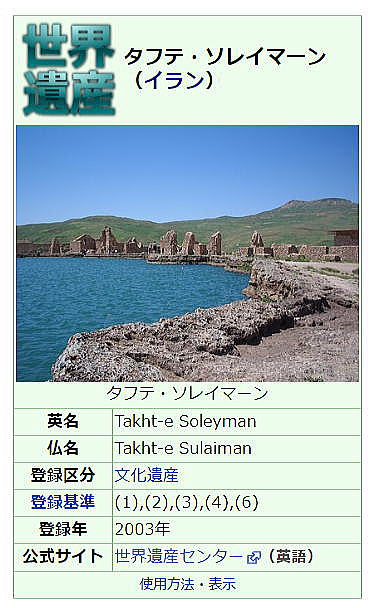 | 総合メニュー(西アジア) イランの世界遺産 世界遺産1 世界遺産2 世界遺産3 世界遺産4 世界遺産5 世界遺産6 世界遺産7 世界遺産8 世界遺産9 世界遺産10 世界遺産11 世界遺産12 世界遺産13 世界遺産14 世界遺産15 世界遺産16 世界遺産17 世界遺産18 世界遺産19 世界遺産20 世界遺産21 世界遺産22 世界遺産23 次はイランの世界遺産4です。 ◆イランの世界遺産4 タフテ・ソレイマーン (2003年) ![]() 出典:Wikipedia ![]() タフテ・ソレイマーン の位置 出典:グーグルマップ ![]() タフテ・ソレイマーン myself - 投稿者自身による作品, CC 表示-継承 3.0, リンクによる Source:Wikimedia Commons タフテ・ソレイマーン(ペルシア語: تخت سلیمان Takht-e Soleymān)は、イラン・西アーザルバーイジャーン州のタカブの近郊にあるゾロアスター教及びサーサーン朝の聖地です。 2003年7月3日、ユネスコの世界遺産に登録されました。名称はペルシア語で「ソロモンの玉座」を意味します。 概要 タフテ・ソレイマーンは、渓谷の中にある史跡であり、テヘランの西400km離れた沃野の真ん中にあります。 遺構は直径約100メートル、水深約100メートルの活動を停止した火口湖を中心に建てられており、主にサーサーン朝時代に建造された宗教施設群やフレグ・ウルス時代に建造された宮殿遺跡群も含みます。 (『集史』などにアバカ時代に夏営地として宮殿が建設された記録がある) サーサーン朝はゾロアスター教を国教と定めていましたが、特に王朝後期に国家的な拝火壇がイラン南西部のファールス地方から西北部のアーゼルバーイジャーン地方へ移されたようで、アッバース朝時代の歴史家タバリーが『諸使徒と諸王の歴史』で述べる宗教都市シーズ、後代のゾロアスター教文書に言及されるサーサーン朝の国家的最重要拝火壇のひとつ「アードゥル・グシュナスプ聖火」が、このタフテ・ソレイマーン遺跡であった可能性が高いと考えられています。 フィールーザーバードのようなイランの多くの遺跡と同様に、ゾロアスター教の寺院、宮殿、レイアウトなどは、イスラーム建築の発展に大きな影響を与えました。 ![]() Takht e Soleiman, Takab, Iran myself - 投稿者自身による作品, CC 表示-継承 3.0, リンクによる Source:Wikimedia Commons ![]() The Throne of Solomon, Takab, Iran (تخت سلیمان) myself - 投稿者自身による作品, CC 表示-継承 3.0, リンクによる Source:Wikimedia Commons ![]() Takht e Soleiman, Takab, Iran myself - 投稿者自身による作品, CC 表示-継承 3.0, リンクによる Source:Wikimedia Commons ![]() The Throne of Solomon, Takan, Iran (تخت سیلمان) myself - 投稿者自身による作品, CC 表示-継承 3.0, リンクによる Source:Wikimedia Commons この遺跡にソレイマーン(ソロモン王)の名前がつけられた由来は、かつてソロモン王がこの土地の100mの深さのある火口湖に怪物を閉じ込めたという伝説が残っていることに求められます。 また、他に火口湖跡がいくつもあり、これらの窪地は湧き水であふれています。その窪地は、ソロモン王が古の時代に作ったと言い伝えられ、現在まで至っているといわれています。イエスおよびザラスシュトラに関連した4世紀のアルメニア語手稿をはじめ、のちにはイスラーム時代の歴史家たちも、この湖に対して様々に伝説などを記録しています。旧火口湖の側にあるゾロアスター教の寺院もこの伝説にもとづいています。 考古学調査では、タフテ・ソレイマーン遺跡には紀元前5世紀のハカーマニシュ朝や後期パルティアの住居なども周辺から多数発見されていますが、その他にもサーサーン朝の王が刻まれている硬貨やビザンツ帝国皇帝のテオドシウス2世の硬貨も見つかっています。伝説によると、サーサーン朝の歴代の君主たちは王位を受ける前にタフテ・ソレイマーンを訪問し、火をささげたと言います。 ◆タフテ・ソレイマーンの世界遺産への登録基準 この世界遺産は世界遺産登録基準のうち、以下の条件を満たし、登録された(以下の基準は世界遺産センター公表の登録基準からの翻訳、引用)。 (1) 人類の創造的才能を表現する傑作。 (2) ある期間を通じてまたはある文化圏において、建築、技術、記念碑的芸術、都市計画、景観デザインの発展に関し、人類の価値の重要な交流を示すもの。 (3) 現存するまたは消滅した文化的伝統または文明の、唯一のまたは少なくとも稀な証拠。 (4) 人類の歴史上重要な時代を例証する建築様式、建築物群、技術の集積または景観の優れた例。 (6) 顕著で普遍的な意義を有する出来事、現存する伝統、思想、信仰または芸術的、文学的作品と直接にまたは明白に関連するもの(この基準は他の基準と組み合わせて用いるのが望ましいと世界遺産委員会は考えている)。 世界遺産5へつづく |