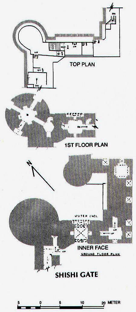| 総合メニュー(西アジア) パキスタンの世界遺産 世界遺産1A 世界遺産1B 世界遺産1C 世界遺産2A 世界遺産2B 世界遺産2C 世界遺産2D 世界遺産2E 世界遺産3 世界遺産4A 世界遺産4B 世界遺産4C 世界遺産4D 世界遺産5 世界遺産6A 世界遺産6B 世界遺産6C 世界遺産6D シャー・チャンドワーリー門 6B ![]() シャー・チャンドワーリー門 コンピュータが読み取れる情報は提供されていませんが、Omar mukhtar~commonswikiだと推定されます(著作権の主張に基づく) - コンピュータが読み取れる情報は提供されていませんが、投稿者自身による作品だと推定されます(著作権の主張に基づく), パブリック・ドメイン, リンクによる Source:Wikimedia Commons シャー・チャンドワーリー門は、城壁の主要部と礼拝堂を結ぶ門です。聖者シャー・チャンドワーリーにちなんで名づけられました。彼はこの門の建築にあたり俸給を受け取らず、建築中に死亡した後に門のそばに埋葬されました。彼を祭る祠が現存します。 この門もまた、二重構造を採用しています。幅13.3メートル、奥行き8.23メートル、中央のアーチ部は幅3.66メートルです。 カーブル門 ![]() カーブル門の図面 コンピュータが読み取れる情報は提供されていませんが、Omar mukhtar~commonswikiだと推定されます(著作権の主張に基づく) - コンピュータが読み取れる情報は提供されていませんが、投稿者自身による作品だと推定されます(著作権の主張に基づく), CC 表示-継承 2.5, リンクによる Source:Wikimedia Commons ![]() ロータス・フォートのカーブル門 Omar mukhtar - http://en.wikipedia.org/wiki/File:Rohtas_Fort_Magnificent_Kabuli_Gate.jpg, CC 表示-継承 3.0, リンクによる Source:Wikimedia Commons この門は、城塞の西側に位置し、カーブルへ続くルート上にあることからカーブル門と名づけられました。カーブル門も二重構造であり、幅3.15メートルあります。門の両脇には、稜堡が設けられ、外側には5つの銃眼が設置されました。門の南側は、シャーヒー・モスクに面しており、人々はこの門のことをシャーヒー・ダルワーザーと呼びます。また、階段井戸が一つ近くにあります。 シーシー門 ![]() シーシー門の図面 パブリック・ドメイン, リンク シーシー門の名前の由来は、アーチ部分の装飾に美しいタイルが用いられたことにあります。ロータス・フォートのタイル技術は、のちに、ラホールで洗練されることとなる。色は青色であります。 Source:Wikimedia Commons ![]() シーシー門 コンピュータが読み取れる情報は提供されていませんが、Omar mukhtar~commonswikiだと推定されます(著作権の主張に基づく) - コンピュータが読み取れる情報は提供されていませんが、投稿者自身による作品だと推定されます(著作権の主張に基づく), パブリック・ドメイン, リンクによる Source:Wikimedia Commons ランガール・ハーニー門 ![]() ランガー・ハーン門の図面 不明 - Ihsan H Nadiem, “Rohtas: Formidable Fort Of Sher Shah. Lahore: Sang-e-Meel Publications, ISBN 969-35-0603-0., パブリック・ドメイン, リンクによる Source:Wikimedia Commons ランガール・ハーニー(食堂)門は、二重構造をしており、高さは15.25メートル、幅は3.5メートル、中央部にはアーチの開口部があります。ソヘール門と同様に、ランガール・ハーニー門にもまた、小窓が備え付けられてあります。 ランガール・ハーニー門の両脇には、2つの稜堡が設けられてあり、この門には、台所や食料庫、井戸があります。この門の形式は、L字型をしており、外から入るとすぐに右側に曲がる必要があります。 ターラーキー門 ターラーキー門は、15.25メートルの高さ、13.8メートルの幅があります。両脇には、稜堡が設置されています。「ターラーク」とは、「離婚」を意味します。言い伝えによると、サビール・スーリー王子がこの門をくぐろうとした際に突如激しい高熱に見舞われるという出来事があり、このことが悪い兆候として見なされたため門にこの名がつけられたとされています。 世界遺産6Cへつづく |