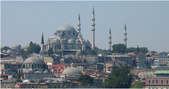 | 総合メニュー(西アジア) リュステム・パシャ・モスク1 リュステム・パシャ・モスク2 セリミエ・モスク スレイマニエモスク ブルーモスク 地下宮殿 次はイスタンブールのモスクです。 イスタンブールには、著名なモスクだけで以下のように、沢山あります。いずれも、欧州側にあります。 ◆スレイマニエ・モスク (Istanbul、トルコ) スレイマニエ・モスク (Süleymaniye Camii) は、オスマン帝国の旧都イスタンブールにあるモスクです。 1557年完成で、オスマン建築(トルコ建築)の最高傑作のひとつと言われています。イスタンブールの旧市街にある7つの丘のひとつの頂上に位置しています。スレイマン・モスクともいいます。 概要 ![]() スレイマニエ・モスク Source:Wikimedia Commons オスマン帝国の第10代君主スレイマン1世の命により、当時の宮廷建築家頭で、トルコ史上最高の建築家と呼ばれるミマール・スィナンが設計、1550年に着工し、7年の歳月をかけて完成しました。 主礼拝堂(トルコ語 : ジャーミー cami)の建物は前後59m、左右58mで、直径27.5m、頂点の高さは地上53mに達する大ドームを中心としたドーム群と4本の長いミナレットを持っています。大モスクの立ち並ぶイスタンブール旧市街の中でもひときわ大きく、丘の頂上よりやや北側の斜面に位置するため、旧市街北の金角湾方面から見て特に印象に残るモスクのひとつです。 礼拝堂内部は大ドームを支える小ドームや柱の工夫によって広く明るい空間を実現しており、イズニク製タイルやステンドグラスで飾られています。 ![]() ドーム内部 Source:Wikimedia Commons スレイマニエ・モスクは礼拝堂のほか、マドラサ、医学学校、病院、給食所、宿泊所、商業施設、ハンマームなど、多くの付属施設を持ち、複合施設群を形成しています。 また、礼拝堂の北側は墓地になっており、建設者スレイマン1世とスレイマンの皇后ヒュッレム・スルタン(ロクセラーナ)の墓廟があり、スレイマン、ヒュッレムのほか、スレイマン廟にはスレイマン2世とアフメト2世の2君主、ヒュッレム廟にはスレイマンの娘ミフリマー・スルタンら幾人かの皇族女子が眠っている。墓苑内には設計者スィナン自身の墓もあります。 建物は1660年に火災の被害を受け、すぐにメフメト4世によって修復されましたが、バロック様式を取り入れた形状に改変されました。19世紀の修復で創建当時の様式が復元されましたが、第一次世界大戦中に武器庫に使われたのが原因で再び火災の被害を受け、1956年に修復されて元の姿を取り戻しました。 ![]() スレイマニエ・モスク Source:Wikimedia Commons ![]() スレイマニエ・モスクの遠景 Source:Wikimedia Commons Source:Wikimedia Commons トプカプ宮殿1へつづく |