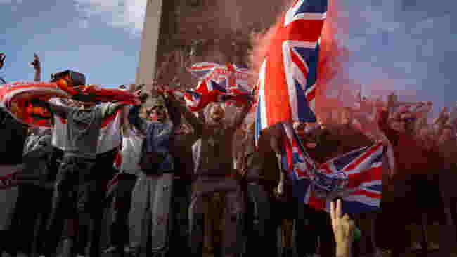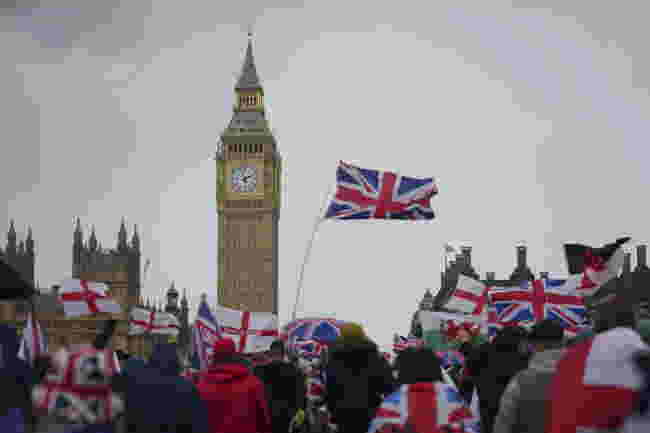 ロンドン、ウェストミンスター近郊で、トミー・ロビンソンが率いる「王国を一つに」デモ行進と集会に参加するデモ参加者たち - スプートニク・インターナショナル、1920年、2025年9月13日