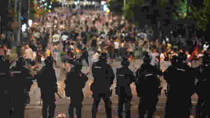 セルビアの抗議 - スプートニク・インターナショナル、1920年、2025年9月15日 c AP Photo / ダーコ・ヴォイノビッチ